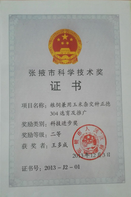 2013年榮獲張掖市科學技術二等獎…